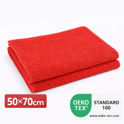 Storlek: 50x70 cm 100% bomullsfrotté, 400 g m2 Färg: röd Det är möjligt att brodera din logotyp på handduken Vi erbjuder även handdukar i LUX-kvalitet.